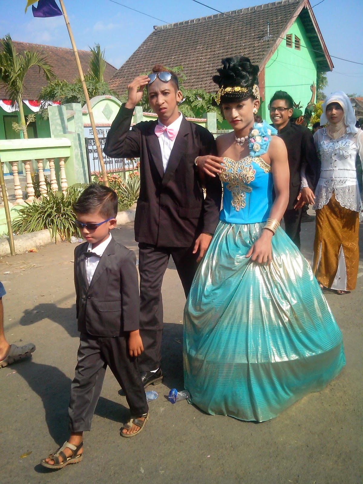 Setelah SMA selesai, tingkat umum perform. Umum di sini meliputi desa-desa dari kecamatan Ngronggot. Di sini saya syok. Ada yang bikin kendaraan-kendaraan unik kayak yang udah saya foto sebelumnya, ada anak kecil yang dandan unyu-unyu kayak pengantin, ada juga cowok yang daandan cantik :|